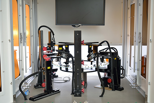 軸類零件自動檢測設備采用雙遠心光路,背光源照明,高分辨率面陣CCD相機成像,并通過電動滑臺定位,以及高精度圖像拼接,獲取全軸高質量圖像;系統通過智能區域定位、亞像素邊緣提取等算法獲得工件幾何形狀信息并進行統計分析與報告輸出。