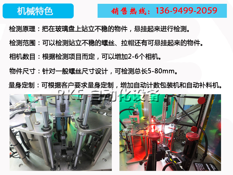 分度盤篩選設備檢測墊片螺絲,把在玻璃盤上站立不穩的物件,懸掛起來進行檢測。檢測范圍廣,速度快,精度高