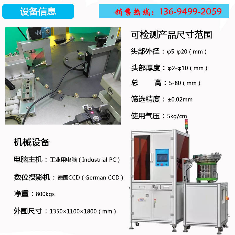 水平 | 檢測產品的頭部直徑、多段高度頭厚 |
