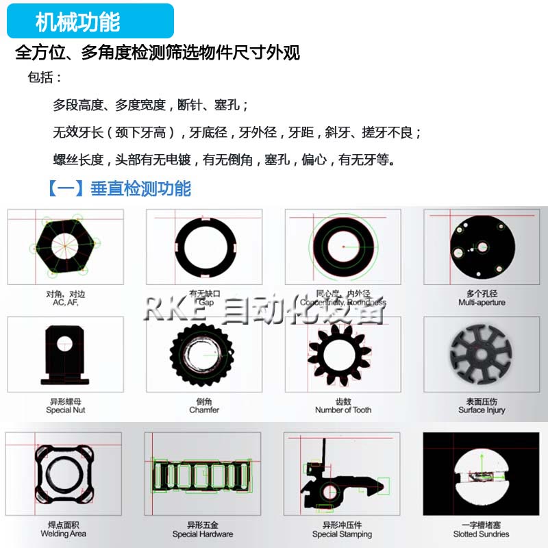 主要是檢測(cè)螺母多段高度、多段寬度、總長(zhǎng)、內(nèi)孔徑、孔內(nèi)毛刺、檢測(cè)牙紋等。 |